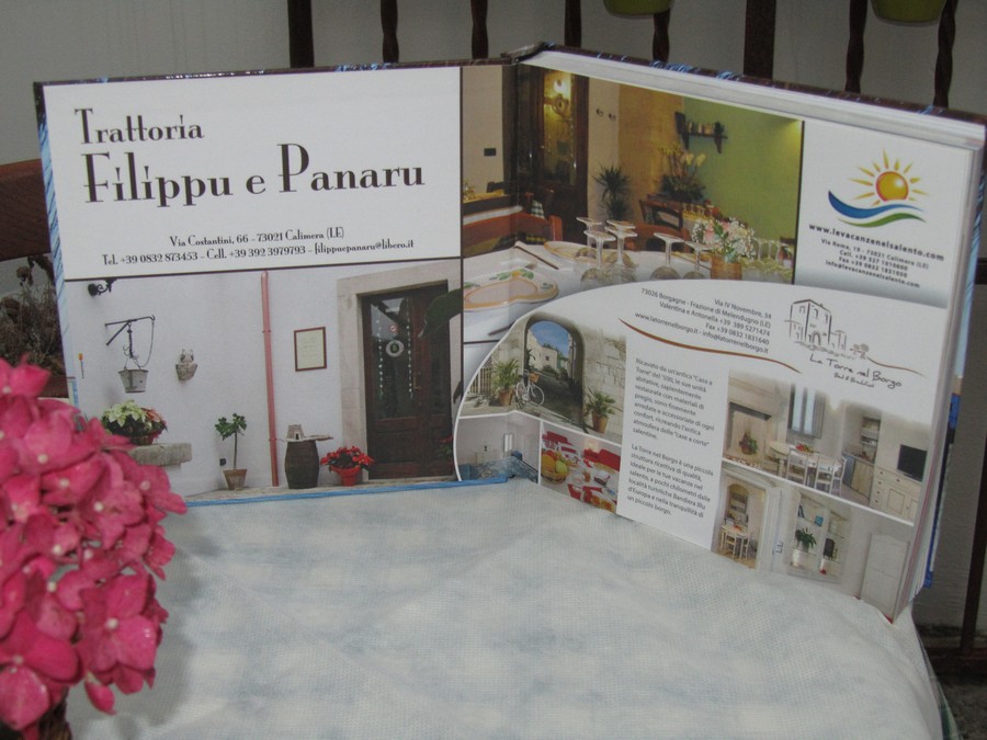 Da un'idea di Valentina e Roberto, nel suggestivo centro storico di Calimera, cuore della Grecìa Salentina, "Filippu e Panaru", tipica Trattoria che vi accoglierà in un' ambiente tradizionalmente curato, dai rilassanti toni della macchia mediterranea. Dotata di trentacinque coperti propone, seguendo le stagionalità ed utilizzando le migliori materie prime, piatti e sapori della tradizione culinaria salentina. Pasta fresca per i primi piatti, preparata secondo tradizione, secondi a base di carne o pesce, accompagnati da verdure fresche o cotte tipiche del territorio.